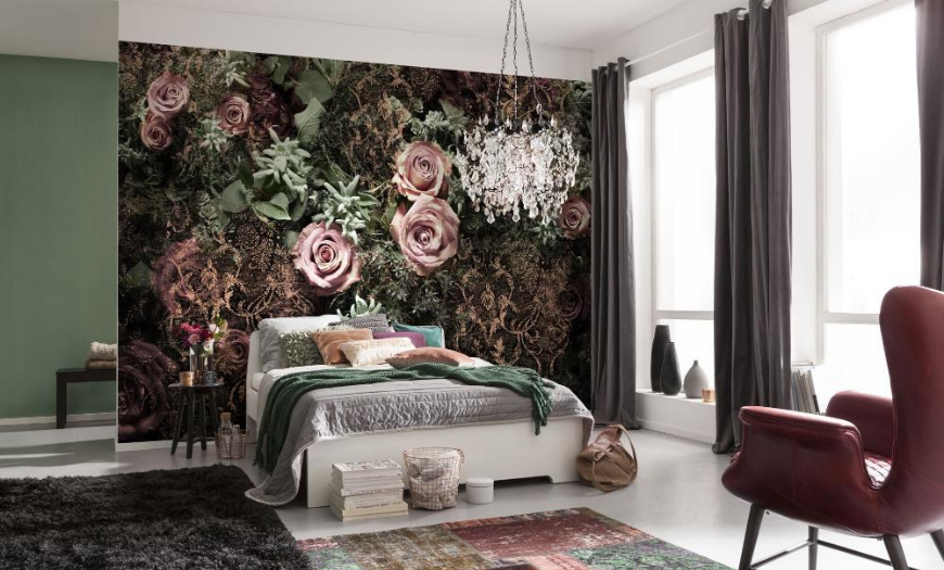 В магазинах большой выбор обоев с рисунком, узором или трафаретом. Они позволяют изменить настроение комнаты: придать ей динамики и ритмичности в сочетании с атмосферой спокойствия спальной комнаты. Изделия с рисунком помогут скрыть несовершенства стен или самой архитектуры: расширить, вытянуть, уменьшить.