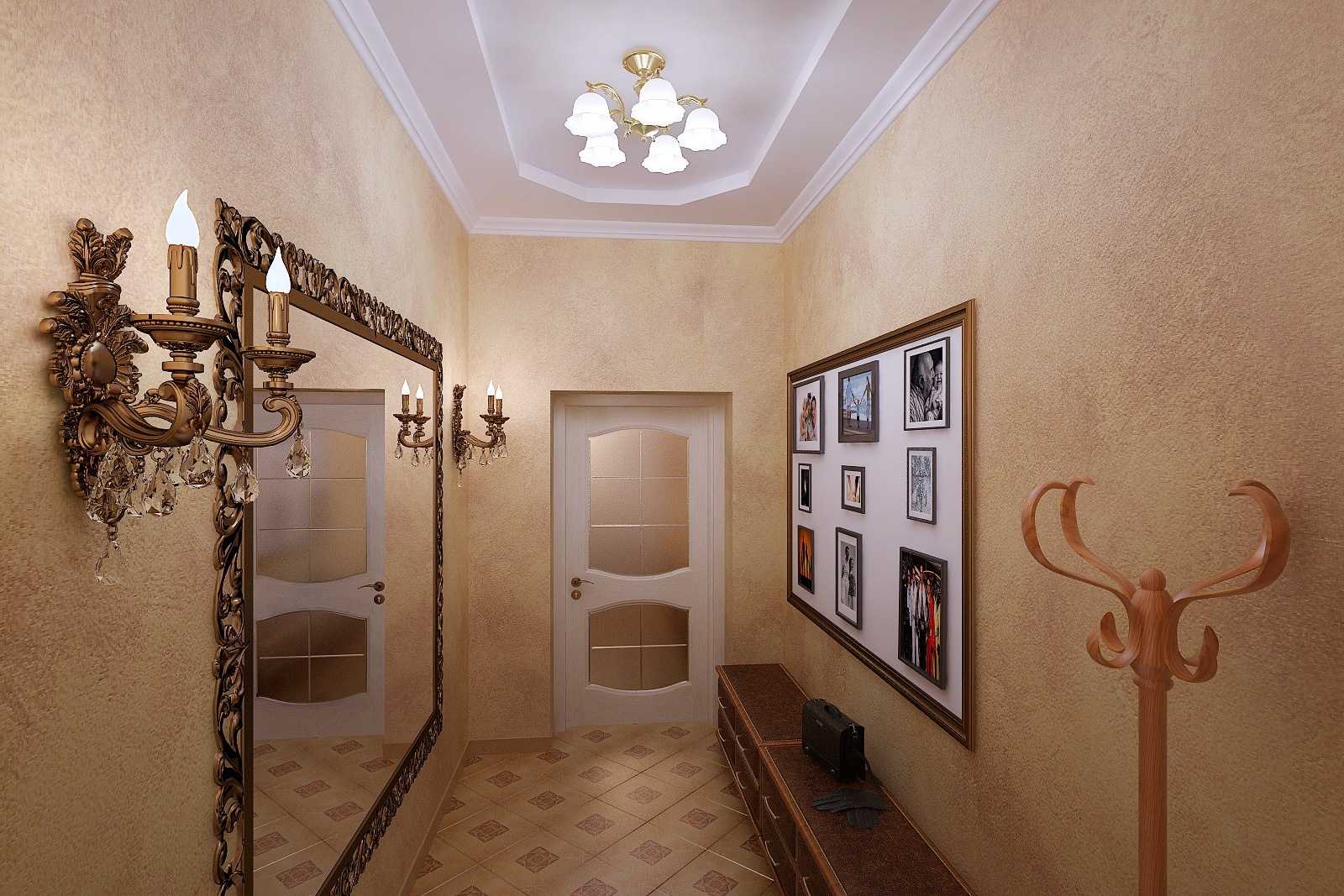 Чтобы визуально расширить площадь следует подбирать светлую отделку для стен. А с низкими потолками помогут справиться глянцевые потолки. Света должно быть много, так как в коридорах обычно темно. Точечные светильники устанавливаются по периметру, а светодиодные ленты помогут подчеркнуть зеркала или коллекцию фотографий.