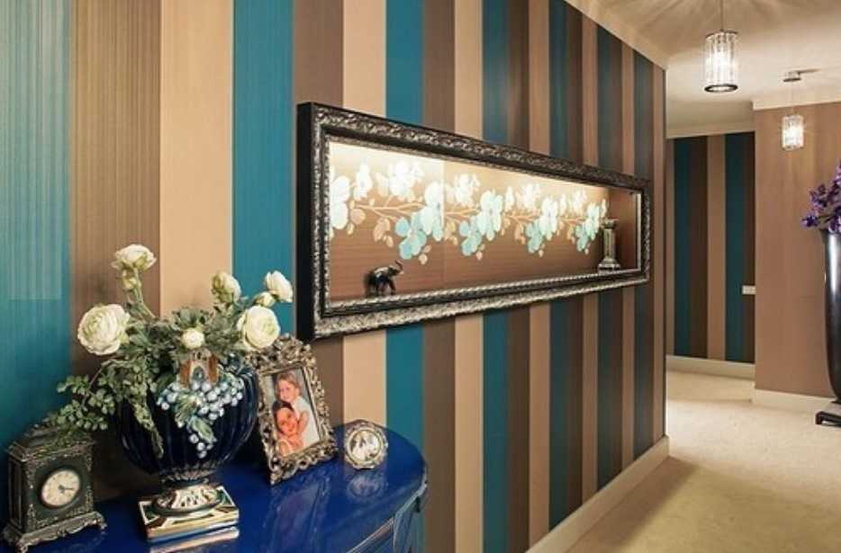 Используются для создания изысканного дизайна. Обладают еще и практичным эффектом – «вытягивают» помещение вверх. Это отличное решение для коридоров с низкими потолками. Но нужно учесть еще один нюанс – вертикальные полосы подчеркивают все неровности, поэтому перед поклейкой стену придется хорошенько отшлифовать.
