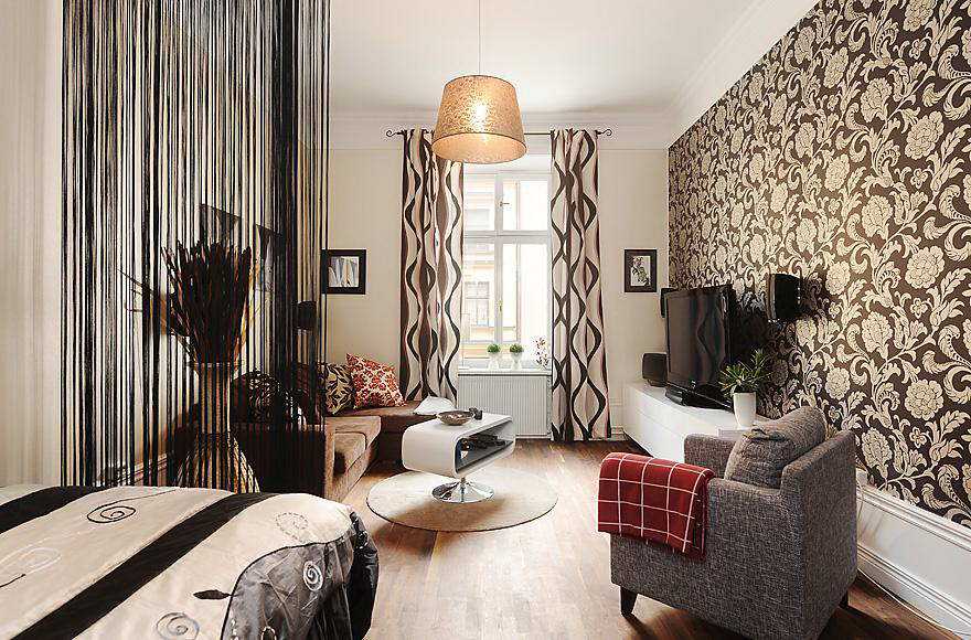 Узкие линии на обоях (как прямые, так и волнистые). Деформируют пространство, что в условиях небольшой площади может сыграть злую шутку.