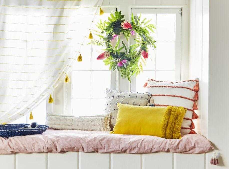 Для украшения такого интерьера можно воспользоваться подушками с рисунками геометрических фигур разного цвета: