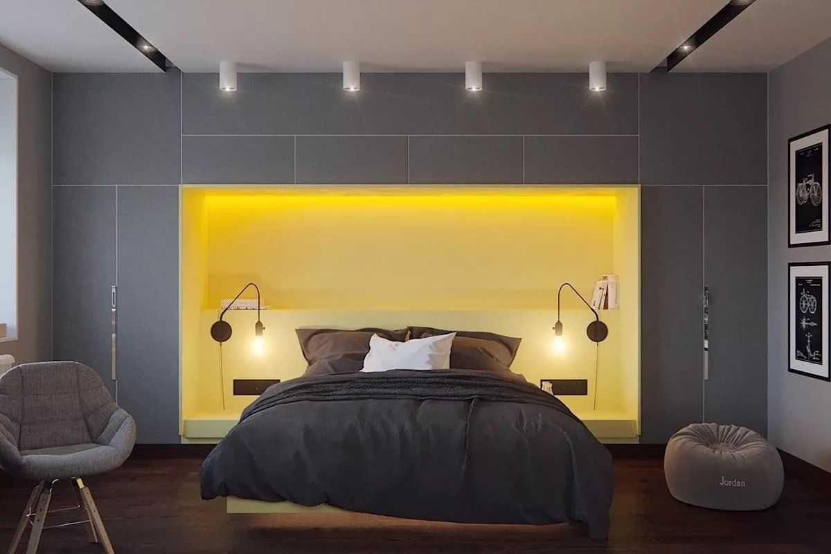 Впечатляющий дизайн настенных светильников в спальне футуристического стиля