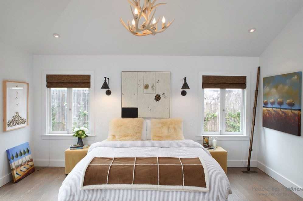 - Применение природных материалов: дерева, камня, меха (например, для накидок на кровать или в качестве ковриков).