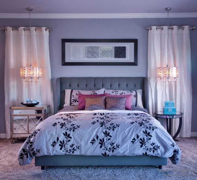 В зависимости от количества площади в помещении кровать ставят у одной из стен или по центру. Вся остальная мебель расставляется так, чтобы появилось ощущение уюта и комфорта.