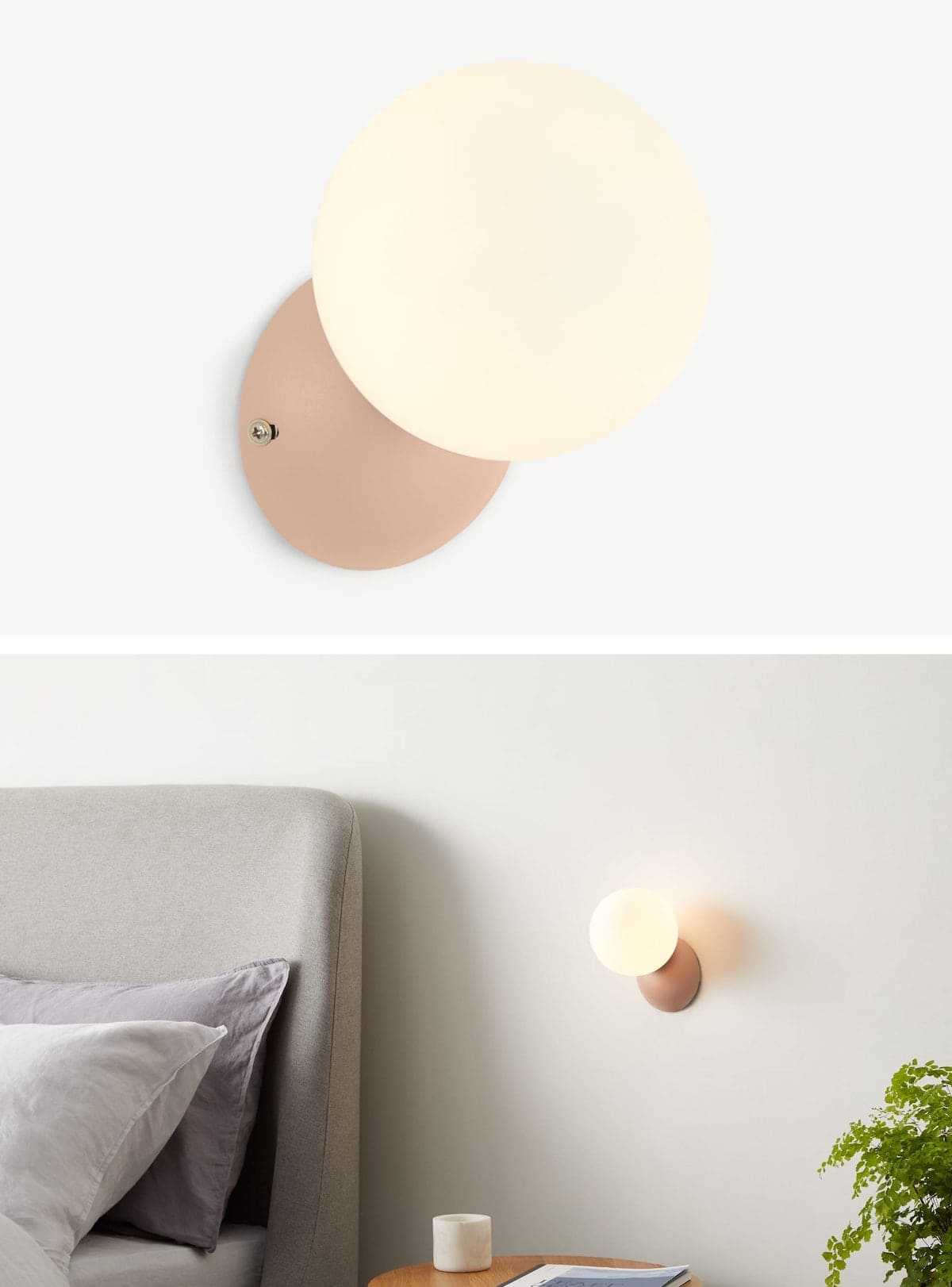 Этот вид освещения чаще всего еще называют бра. Он подойдет в том случае, если около кровати не хватает места для тумбочки. А также в ситуации, когда кровать расположена непосредственно у стены. При подобных обстоятельствах бра превращается в незаменимую вещь.