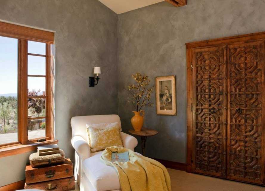 Стильно выглядят жидкие обои и декоративная штукатурка. Причем первый вариант можно нанести самостоятельно, а второй тип отделки лучше доверить профессионалам.
