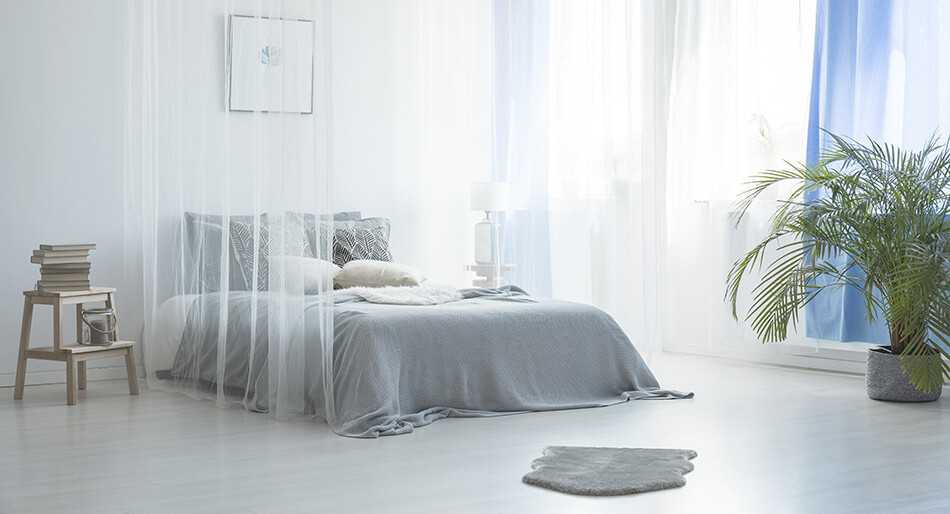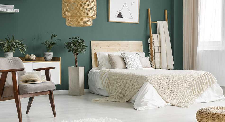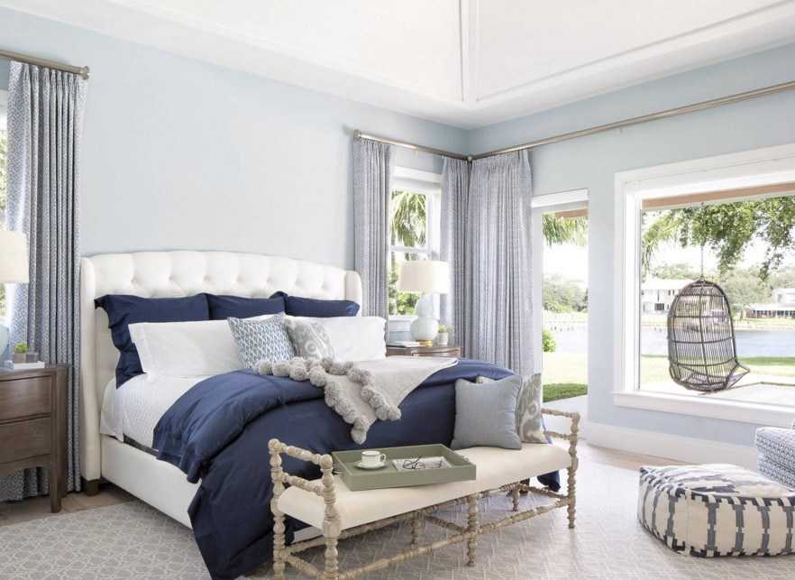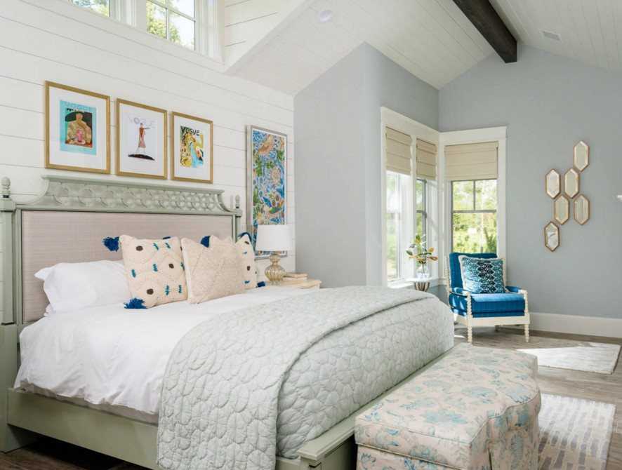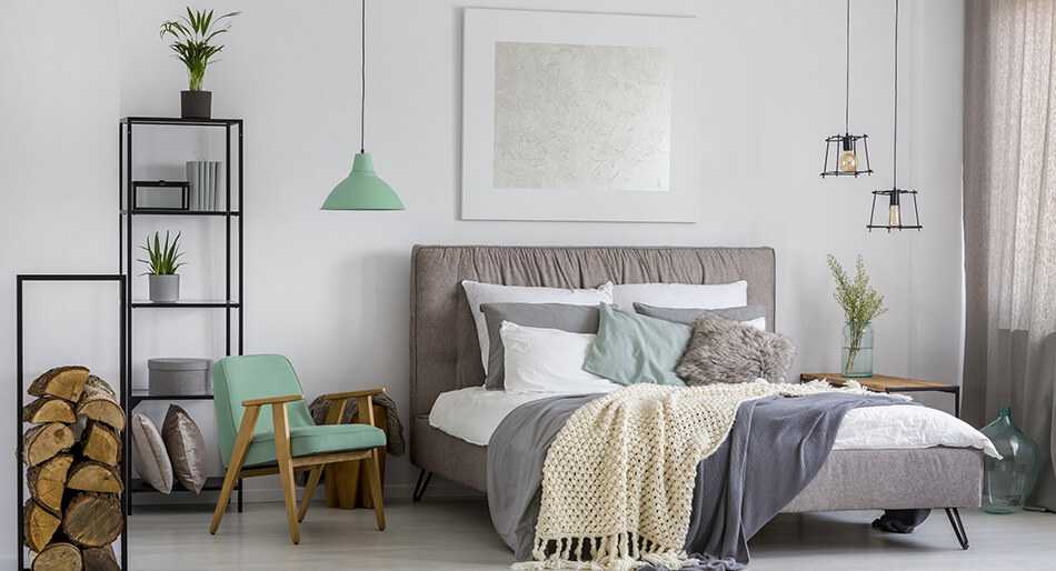При выборе цветовой гаммы важно учитывать также сопутствующие факторы – месторасположение комнаты, стилистику интерьера, характер владельцев. Актуальными для спальни признают белые, голубые, горчичные, серые, светло-зеленые оттенки