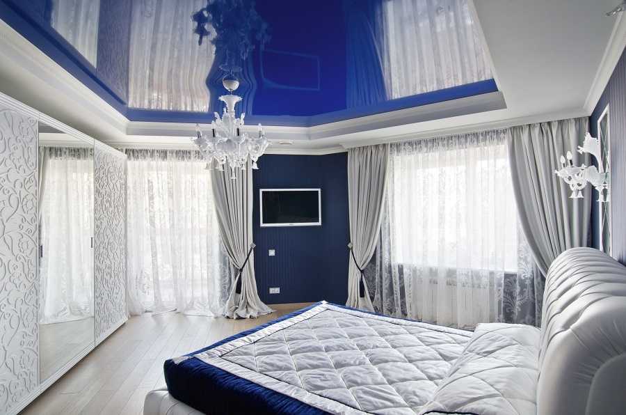 Как выбрать цвет и дизайн натяжных потолков для спальни