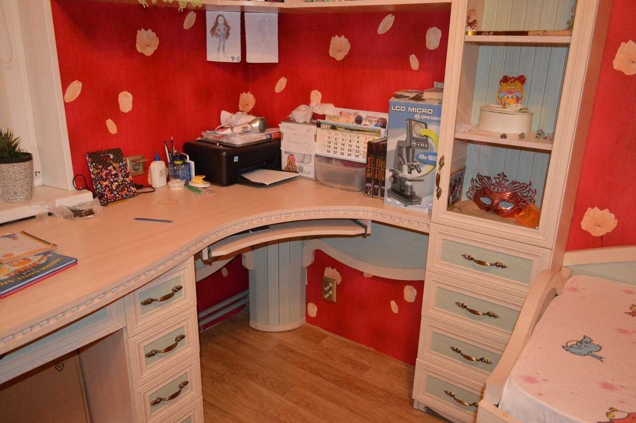 Чаще всего спальня девочки совмещена с ее рабочим кабинетом, поэтому нужно предусмотреть и зону со столом и книжным шкафом.