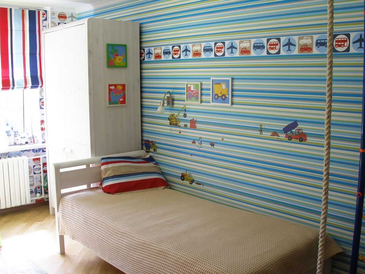 - Обои. Лучший вариант — простые бумажные обои. Они состоят из экологически чистых материалов. С бумажных обоев нельзя стереть рисунки, изображённые фломастером или красками, зато благодаря низкой цене, их можно часто менять.
