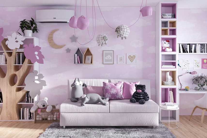 Цвет, в котором выполнен дизайн помещения, влияет на психику человека. Можно выбрать только один цвет или подобрать гармоничные сочетания нескольких тонов. Милые и нежные оттенки помогут ребёнку отдохнуть и расслабиться, поднимут настроение и настроят на позитив.