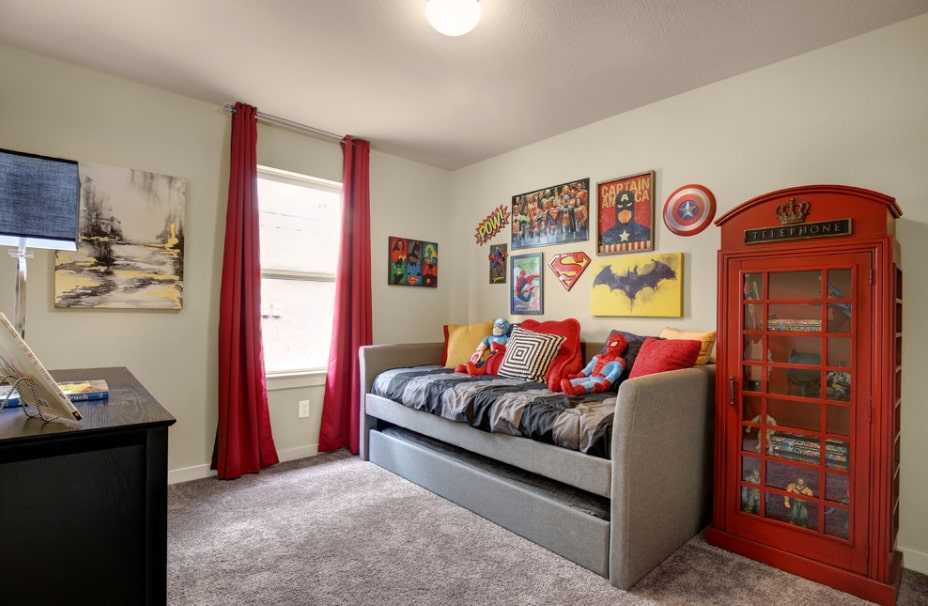 Если ваш ребенок фанат каких-либо персонажей, то можете декорировать в данной тематике всю комнату. Например, если подростку нравятся супергерои, то следует использовать соответствующие фотообои на одной из стен. Другие темы, которые могут развлечь воображение и сделать ребенка счастливым: комната джунглей, пиратская спальня, индуистский зал и многое другое.