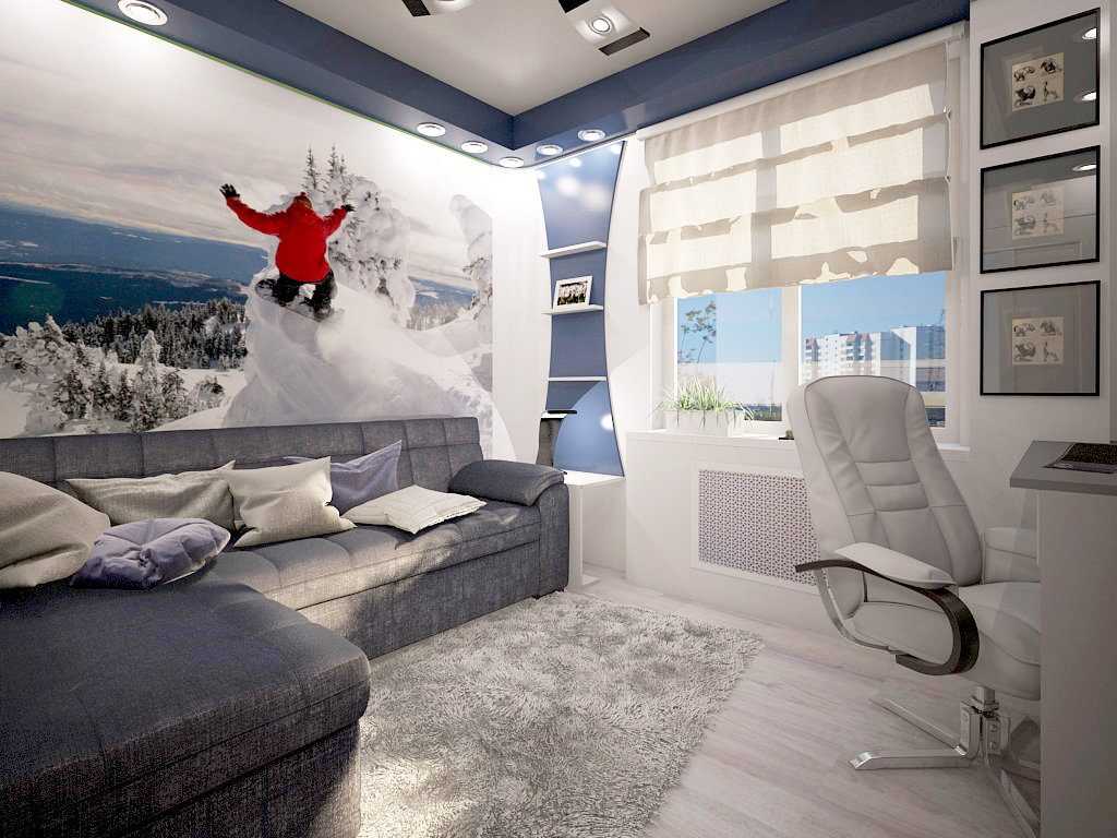 При выборе дизайна необходимо ориентироваться на размер комнаты. Если она большая, то вам крупно повезло, так как в просторном помещении можно без труда выделить место не только для стола, кровати и шкафа, но и еще разместить полки, стеллажи, диван для отдыха и даже зону для игр.