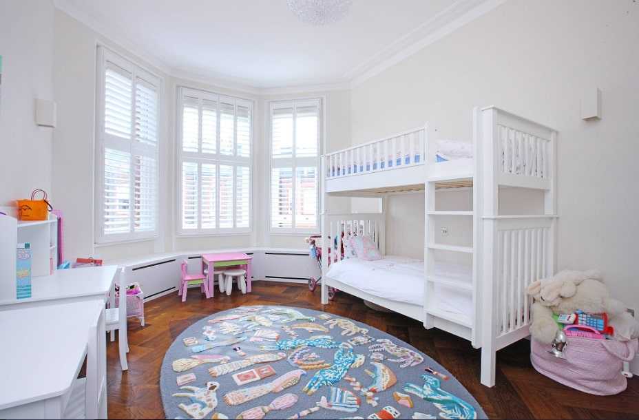 На полу должно быть безопасно покрытие: керамогранит в спальню ребёнка выложит только отчаянный родитель. Страшно представить, что может быть, если ребёнок упадёт с кровати головой на такое крепкое покрытие.