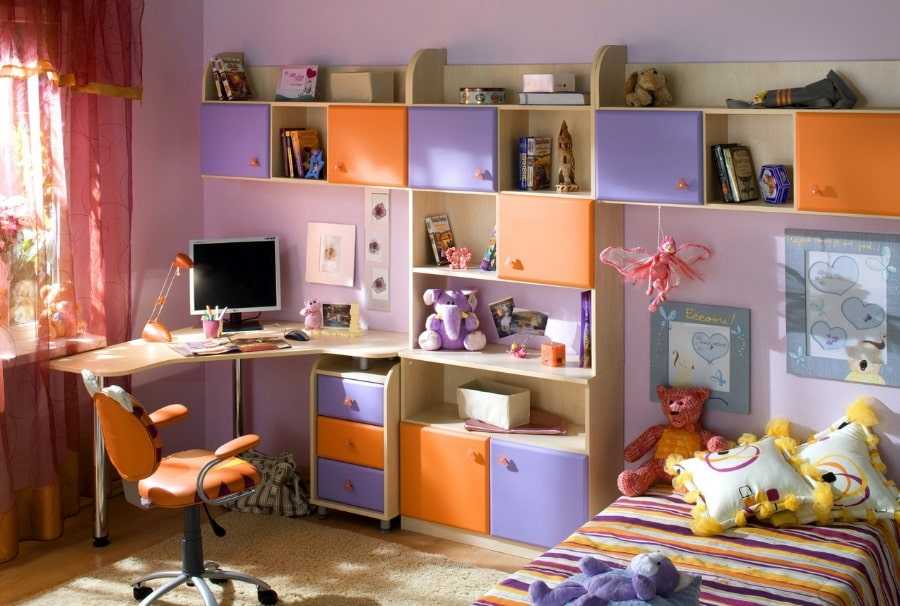 Девичий цвет, повышает настроение, нормализует сон. Но большая концентрация розового в детской расслабляет и отвлекает от учебы. Розовый хорошо разбавляется серыми и пастельными тонами.