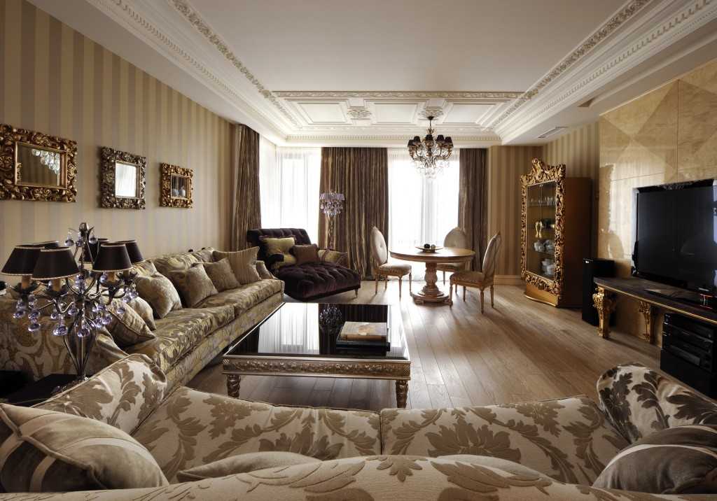 В роскошном стиле необходимо правильно сочетать оттенки. К золоту применяют беж и светло-коричневые цвета. Серебро сочетают с красными, зелеными и серыми тонами.