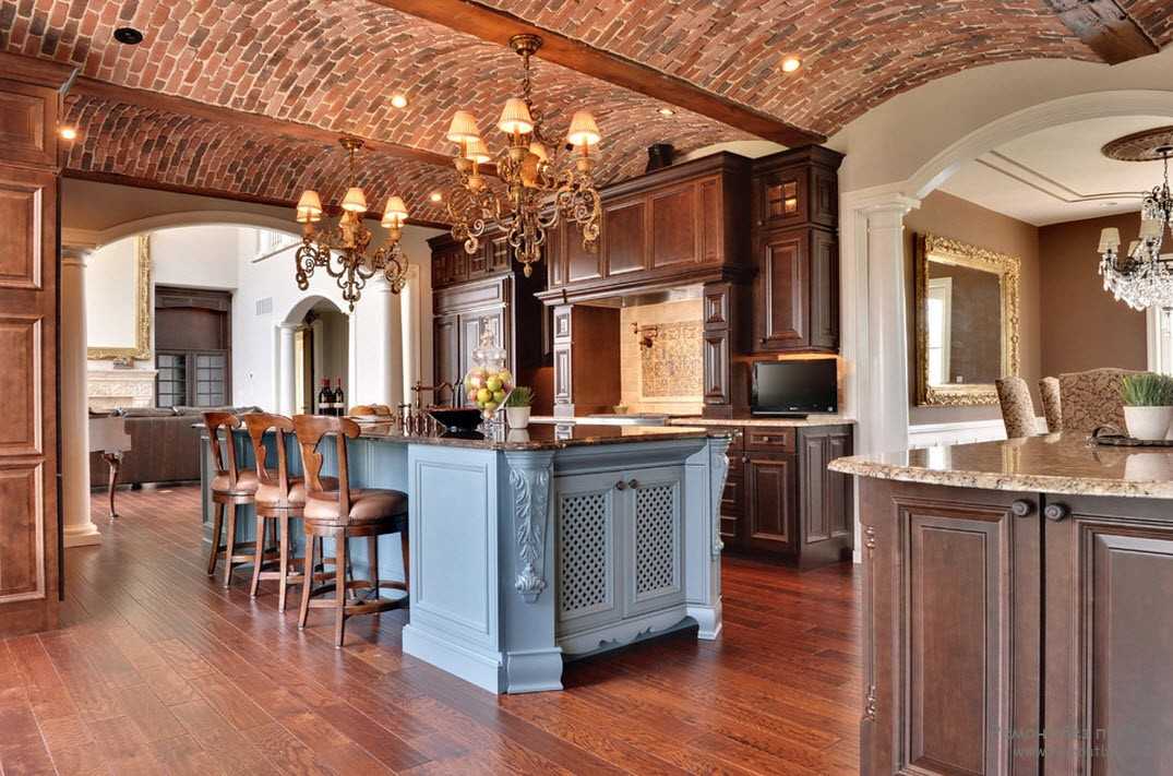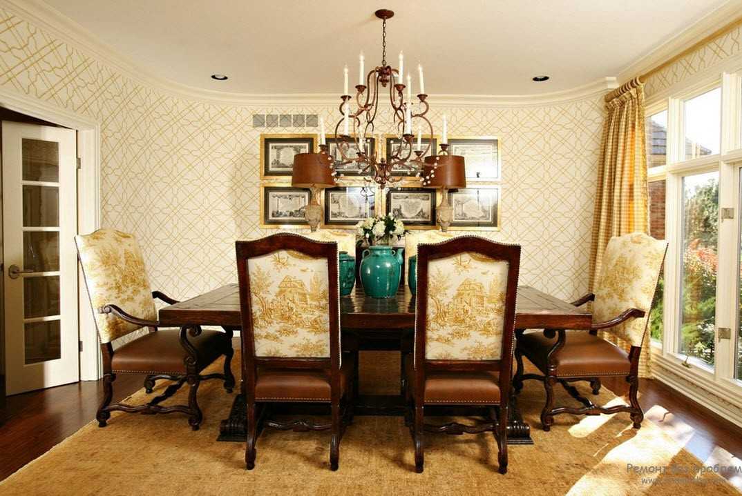 Форма потолка может быть привычно ровной или необычной – сводчатой. Последний вариант сделает обстановку торжественной.
