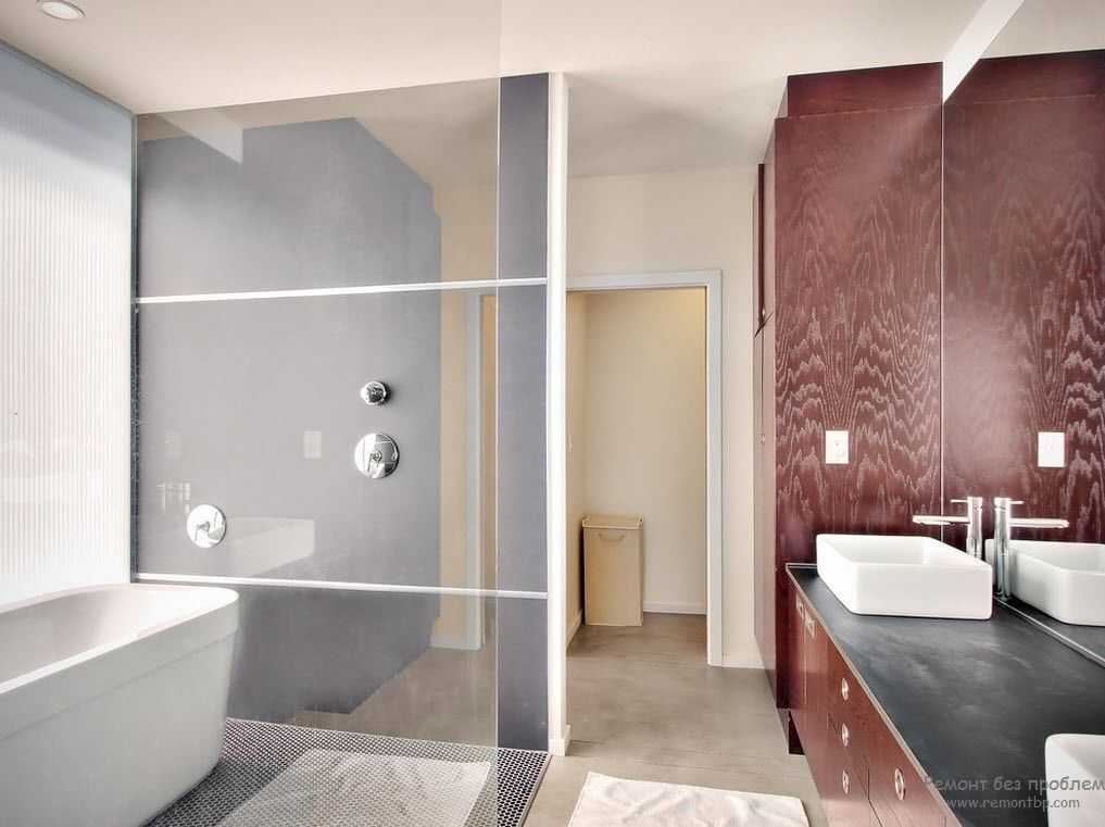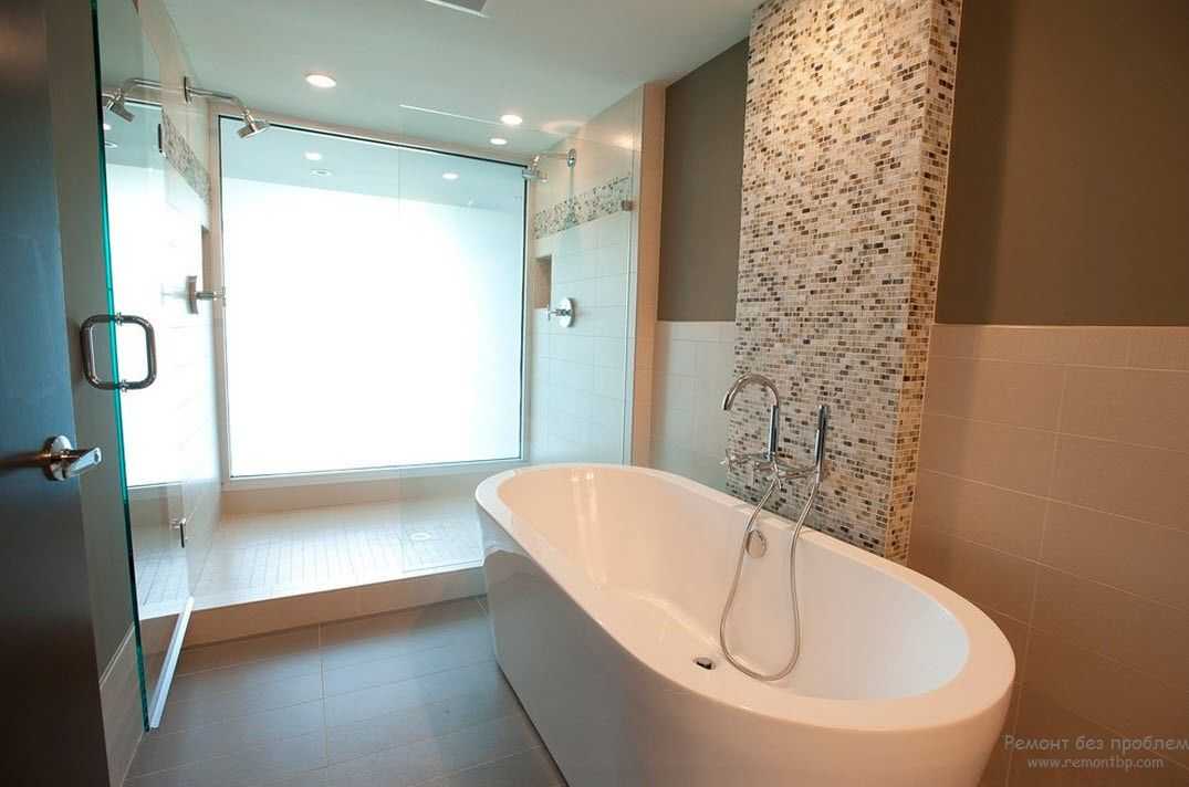 Относительно того, что именно будет: ванна или душевая кабина – здесь все зависит от личных предпочтений хозяев. Если владелец жилища – любитель гидромассажа или СПА-процедур, то, безусловно, ему больше по душе придется акриловая ванна произвольной формы. Если же выбор упадет в пользу душевой кабины, то не следует забывать о том, что она должна быть воздушной и предельно легкой в визуальном восприятии – выбор таких моделей на сегодняшний день также необыкновенно широк.
