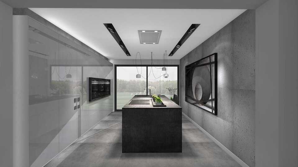 С точки зрения планировки обычно используется объединенная кухня-гостиная в стиле минимализм, но в этом случае необходимо обезопасить себя и своих гостей, расположившихся в лаунж-зоне, от посторонних запахов готовки.