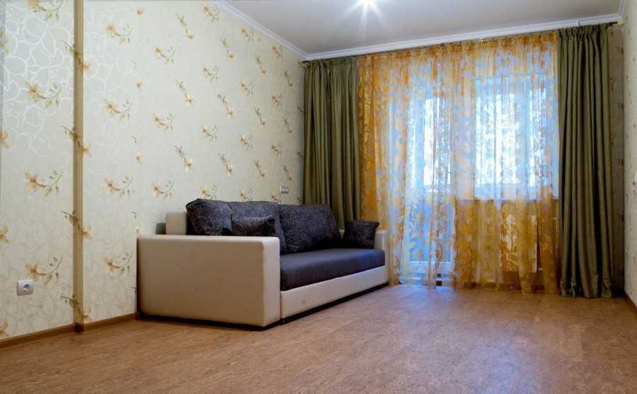 Для проведения границы между двумя зонами применяют разные отделочные материалы. Например, в спальной зоне пол можно выложить ламинатом, стены оформить обоями, а на кухне использовать напольную плитку и водостойкую стеновую покраску.