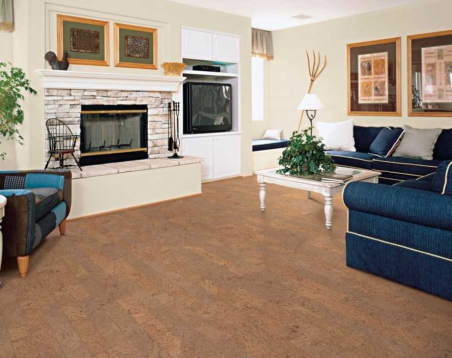 Пробковый пол в интерьере комнаты