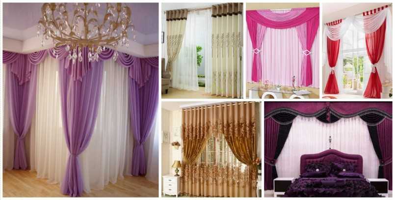 Этот вид ламбрекенов различается по типу ткани. Самые популярные атласные, наполняющие помещение аристократичными нотками. Вуальные модели внесут в помещение торжественность. Ажурные, выполненные в разных техниках, легко сделать самому. Кружевной элемент вносит в атмосферу легкость, воздушность.