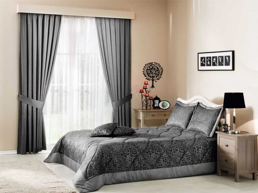 Исходя из дизайна спальни, они могут представлять собой одну широкую штору, полностью закрывающую весь проем окна или же состоять из нескольких штор.