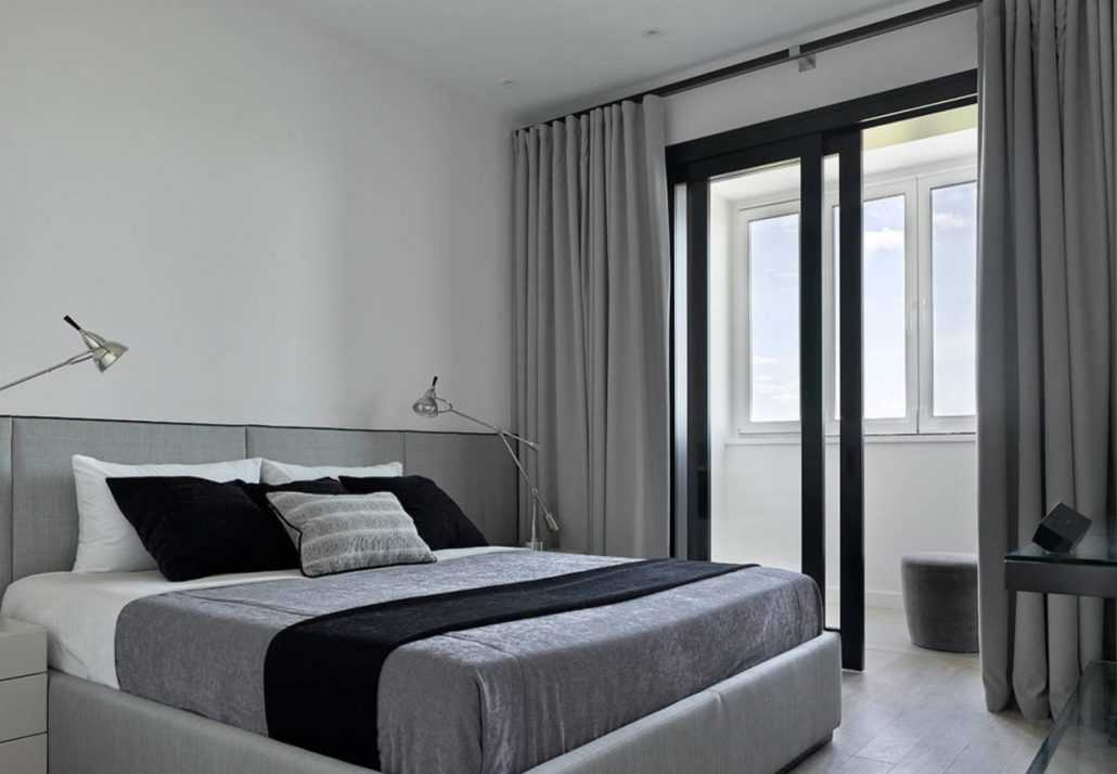 Если из спальни можно выйти на балкон или лоджию, то при выборе подходящего дизайна стоит на это ориентироваться. Конструкция занавесей должна давать возможность распахивать дверь и оставлять проход для человека. В этом может помочь удобный подхват или магнитный держатель.