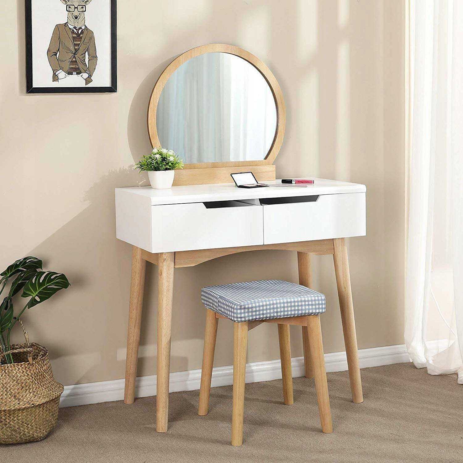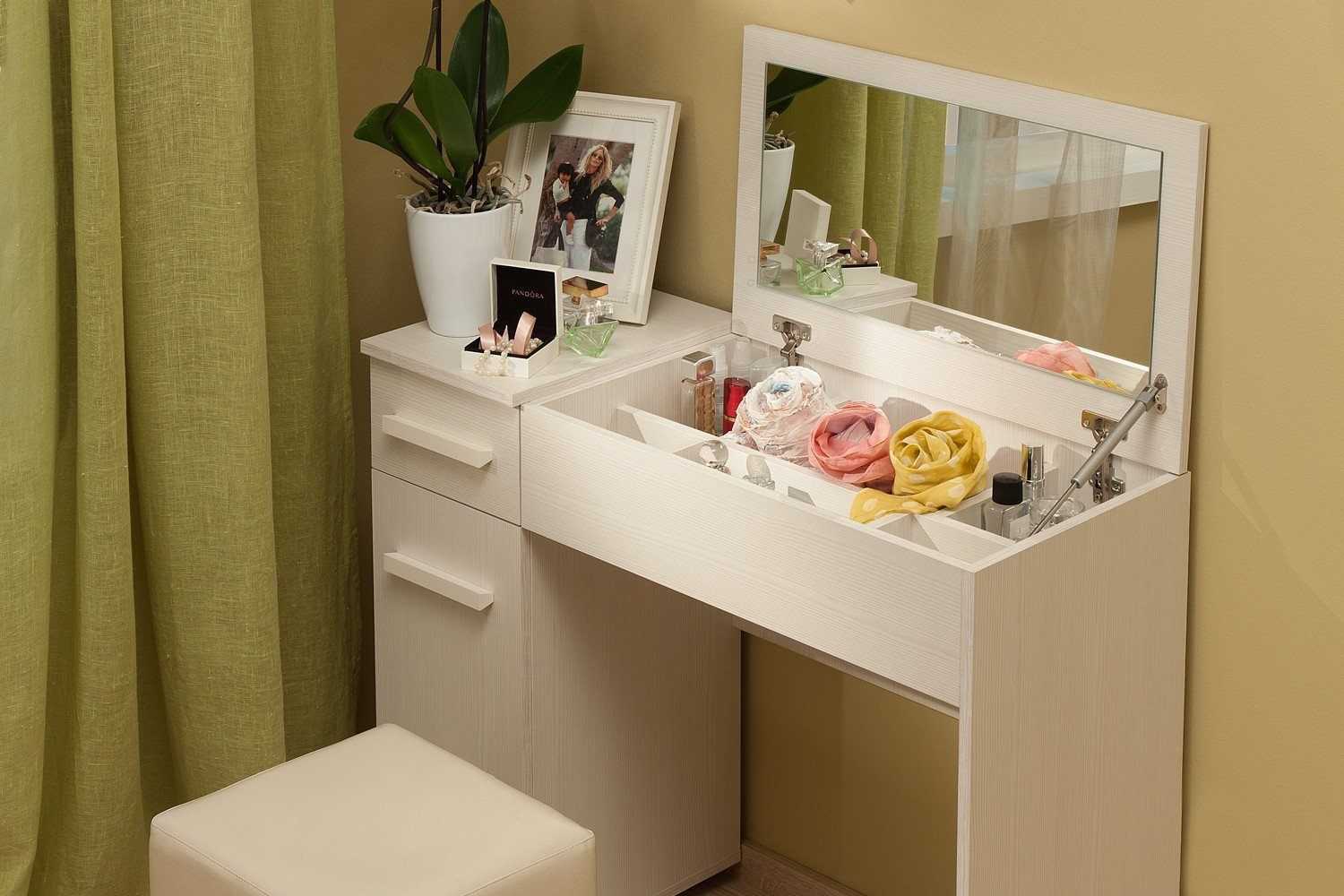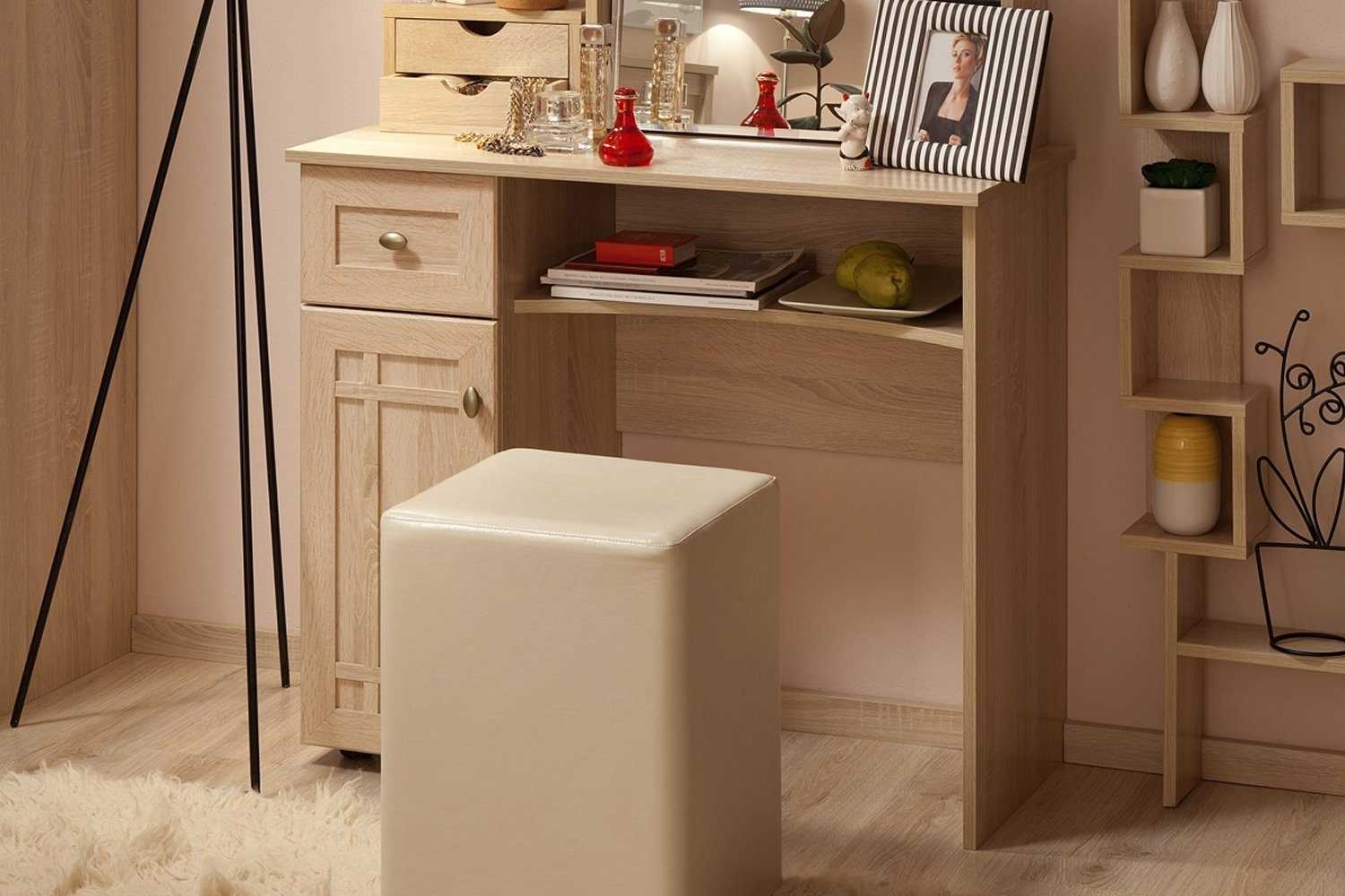 Имеет значение конструкция столика: с ящиками или без, с откидным зеркалом или стационарным, с комодом или двумя тумбами с выдвижными ящиками и так далее.