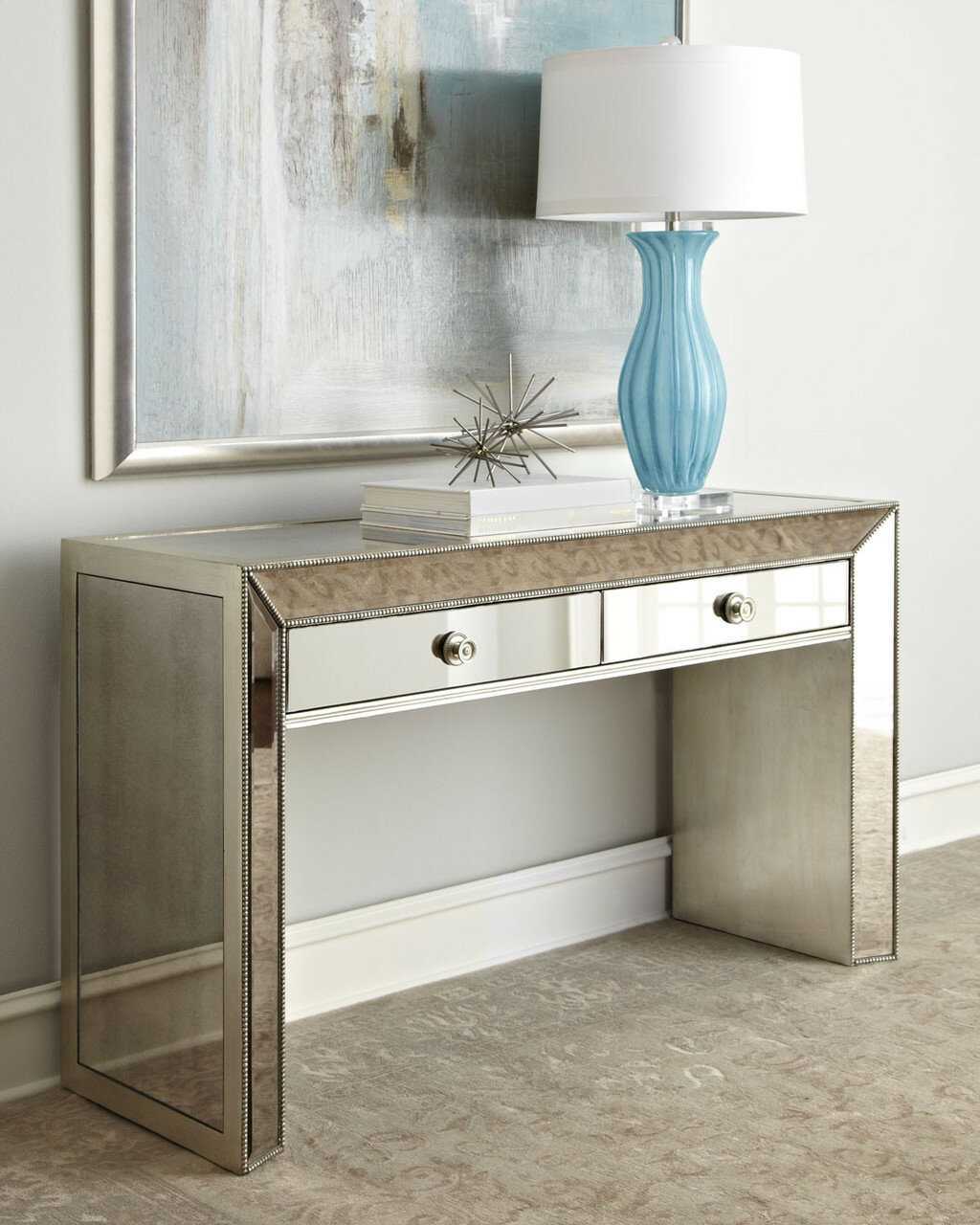 Трюмо в гостиной. В общей комнате, куда приглашают гостей, такой столик становится центральным элементом обстановки. Это по-прежнему столик для мелочей с зеркалом. Чаще всего с ящичками. Но теперь это шик, это предмет гордости, это произведение искусства с приятным дополнением в виде возможности посмотреть на себя в зеркало. Даже рама зеркала завораживает своей роскошью.
