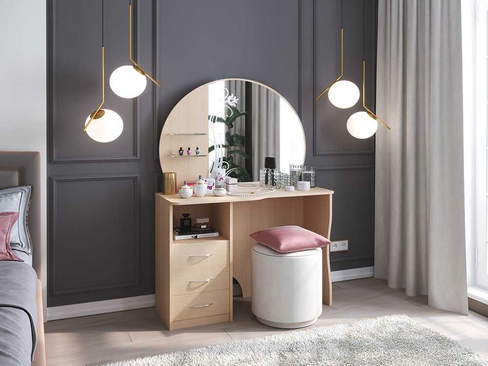 Основными критериями при выборе туалетного столика для спальни небольшого размера являются компактность, функциональность и привлекательный внешний вид изделия. Помимо этого, он должен гармонировать с общим интерьером помещения.