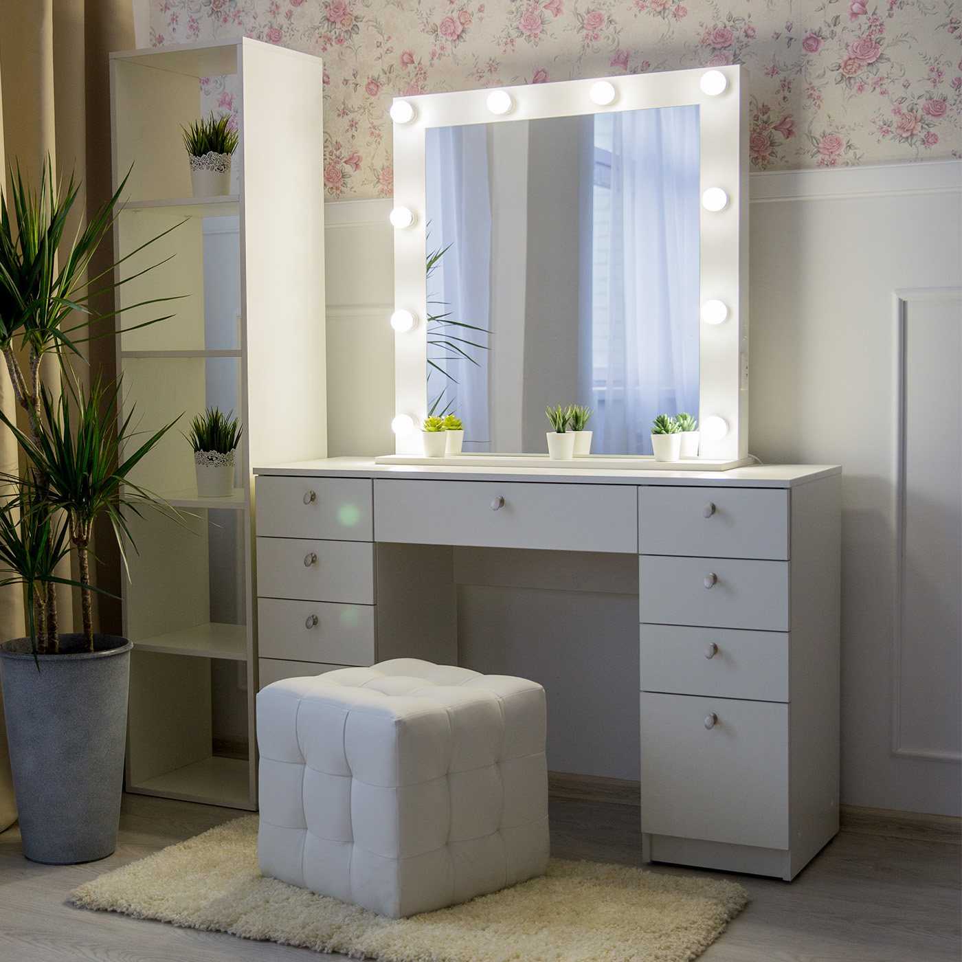 Варианты использования туалетных столиков с зеркалом и подсветкой
