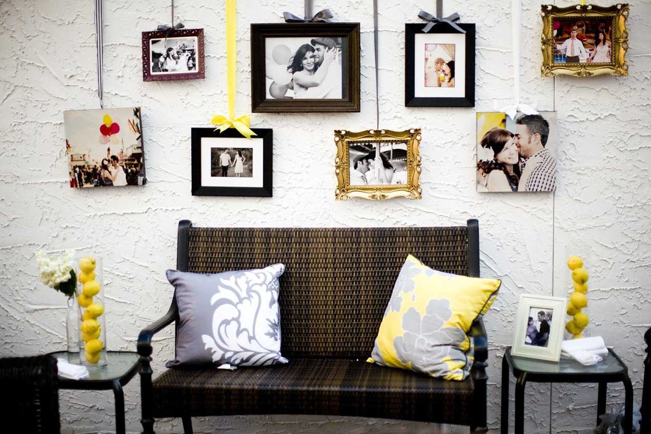 Фото на стене — классический способ привнести в помещение семейное тепло. Можно каждую фотографию оформить по отдельности или сделать из них панно, поместив под стекло в раму. Интересным решением станет панно со своеобразным фотоотчетом об отпуске. Лучшие снимки можно скомпоновать с ракушками, билетами, засушенными растениями.