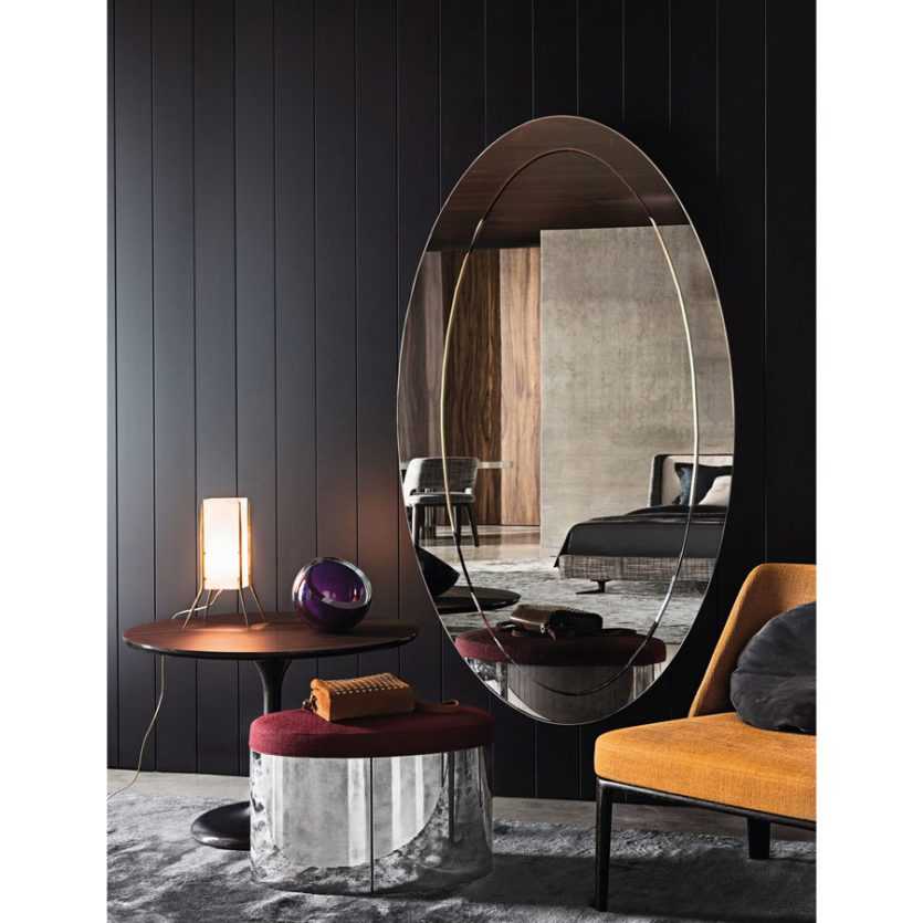 Напольные варианты требуют для себя большего пространства, чем иные виды зеркал. Поскольку они стоят отдельно от всей мебели, для них нужно удачно подобрать место установки. Впрочем, поскольку эти зеркала достаточно мобильны, то их несложно будет передвинуть на другое место и менять его по желанию хозяина.