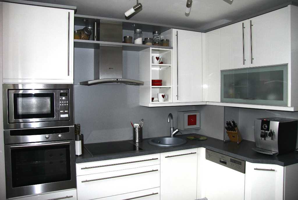 - часть белых, часть серых верхних и нижних фасадов.