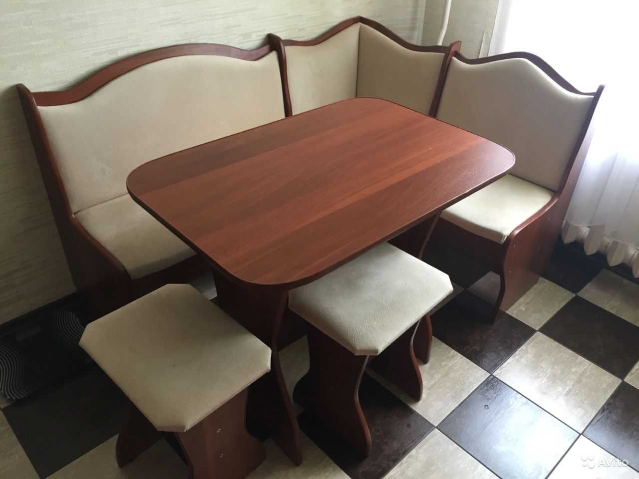 Дизайн обязательно должен сочетаться с остальными предметами мебели и делать помещение еще более функциональным. В основе данной мебели предусмотрен мягкий диван и стол. Комплект может быть дополнен несколькими стульями или скамьей без спинки. Если не планируете часто пользоваться стульями, а кухня маленькая, можно выбрать табуреты, которые легко задвигаются под стол.