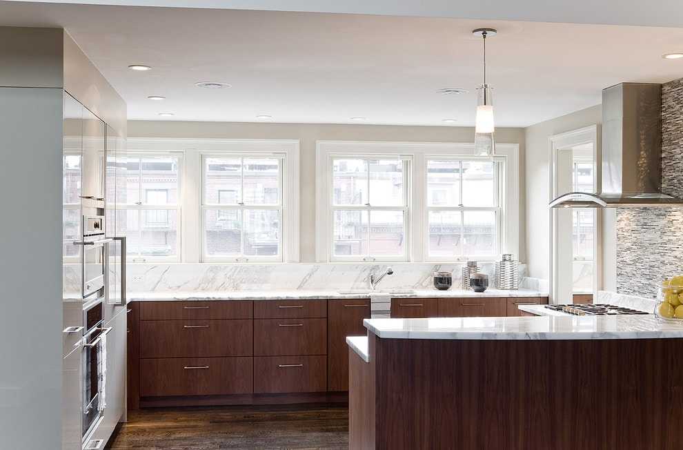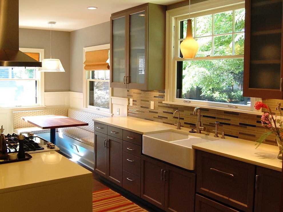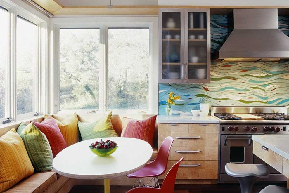 Дизайн кухни с диваном со встроенным местом для хранения