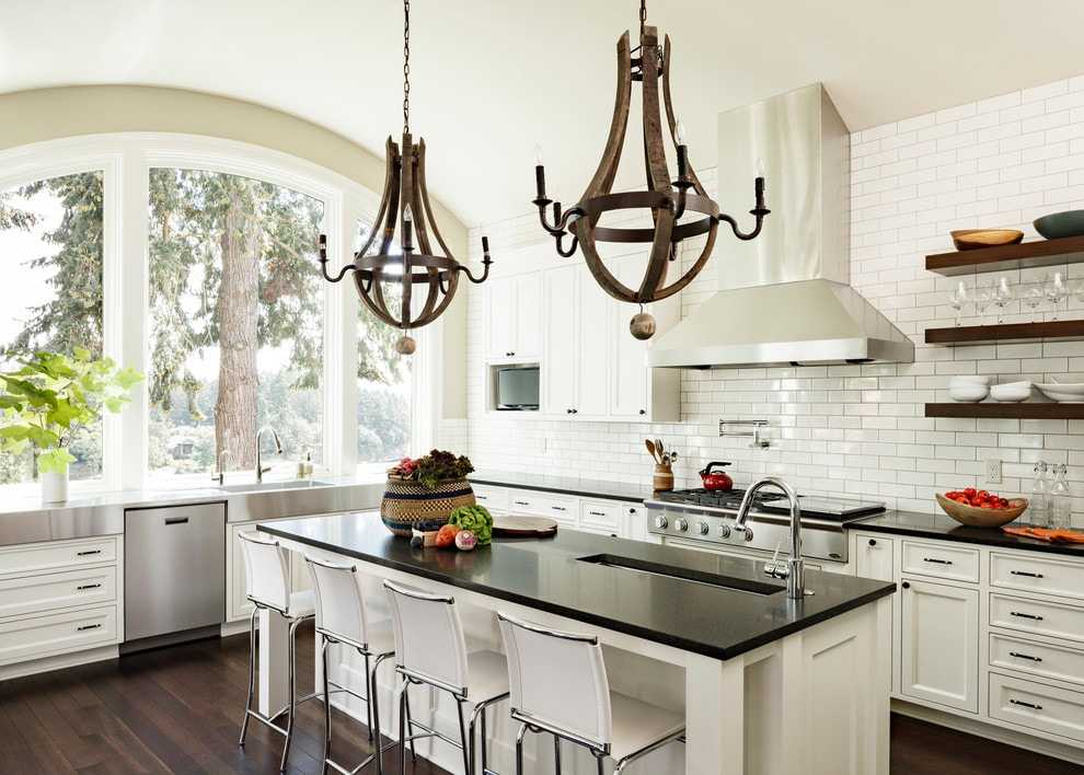 Большое значение на кухне играет освещение. Лучше всего обеспечить не только центральный (потолочный) свет, но и локальный – в рабочей области над столешницей под навесными шкафчиками.