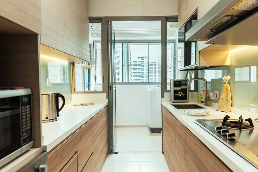 В первую очередь дизайнеры всегда спрашивают о желании и возможности расширить саму комнату за счет соседних. Например, гостиная или балкон могут стать функциональной частью кухни. Иногда «двигают» санузел, чтобы увеличить рабочую зону, но это немного сложнее, чем просто объединить помещения, когда сносится стена или убираются окна и двери. С балконом кухню можно увеличить на 1,5-5 кв. метров, гостиная же увеличит пространство более значительным образом.