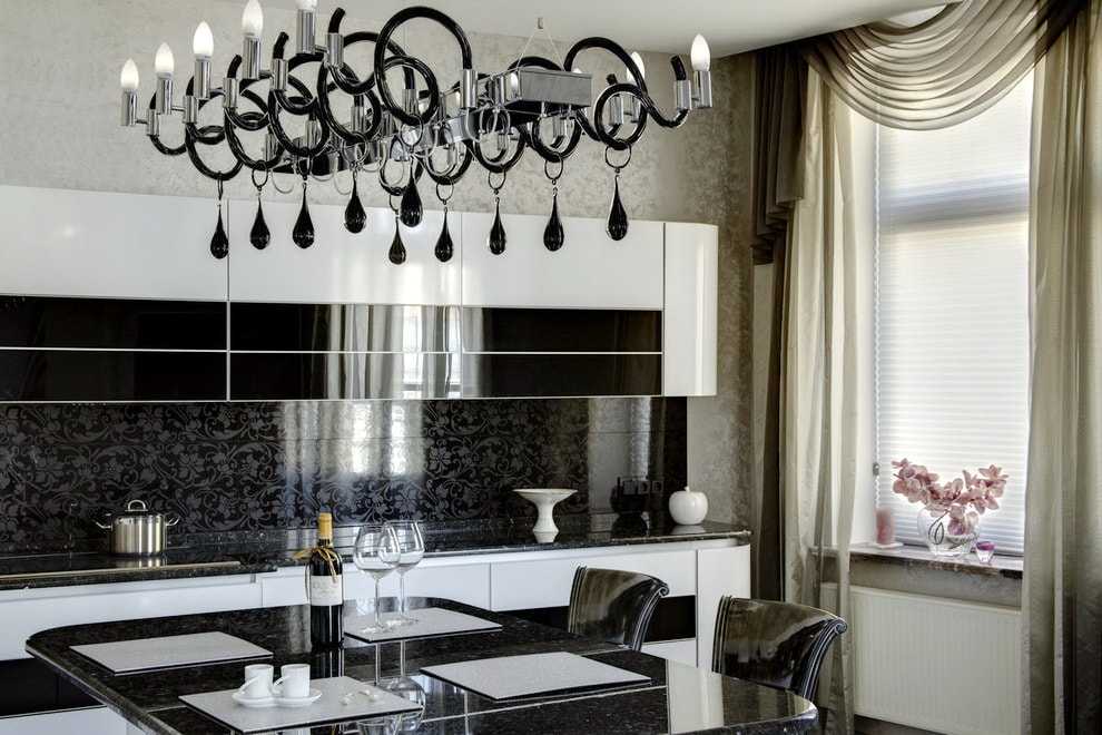 При наличии утепленного балкона либо лоджии обеденную зону переносят туда, важно лишь обзавестись плотными занавесками, способными надежно скрыть обедающих от посторонних глаз. Если места оказалось маловато, так как все занял гарнитур, рассматривается вариант приема пищи за барной стойкой, которая может быть стационарной, откидной, островной