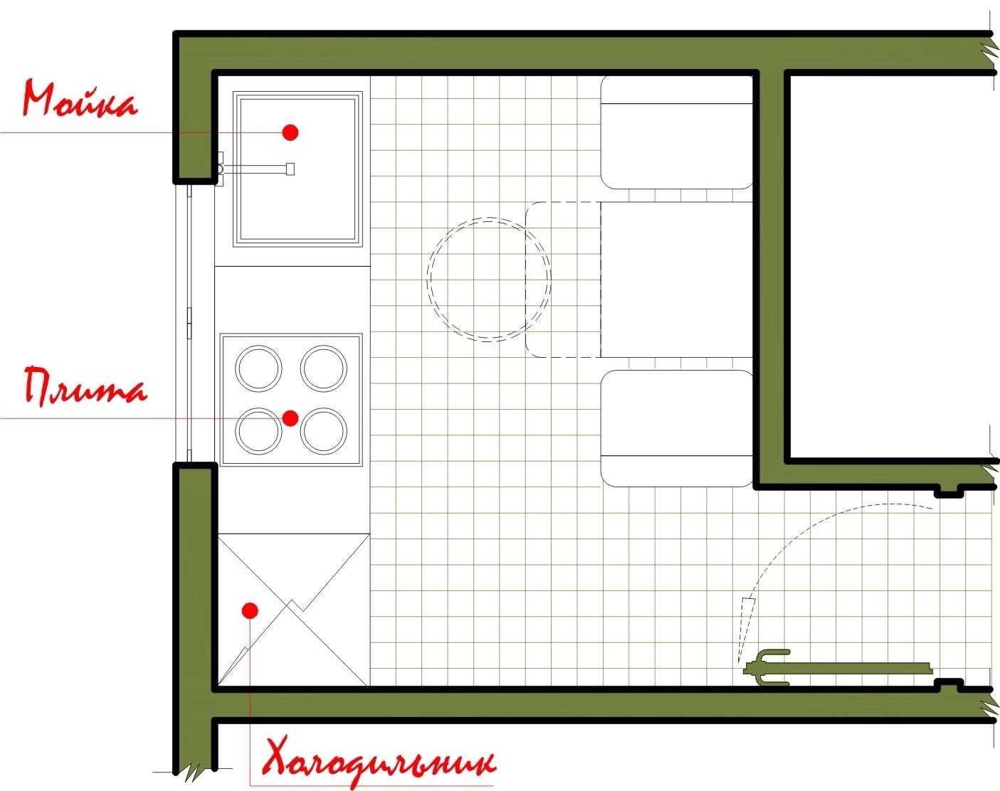 На фото показан пример зонирования маленькой кухни в 5.5 кв. м.