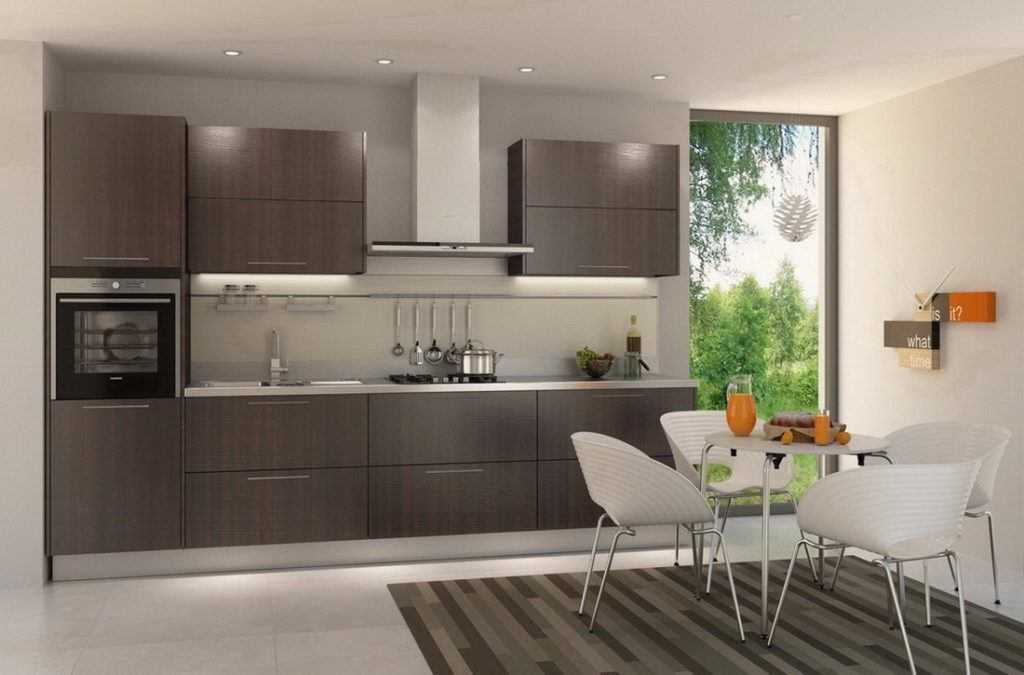 Установка прямой кухни — это простое и практичное решение. Все шкафы и бытовая техника находятся в одном ряду. Если стена достаточно длинная, не будет проблем с размещением всего оборудования, а будет много шкафов. Если ваша стена не слишком длинная, то стоит подумать о высоких верхних шкафах, чтобы вернуть себе немного потерянного пространства.