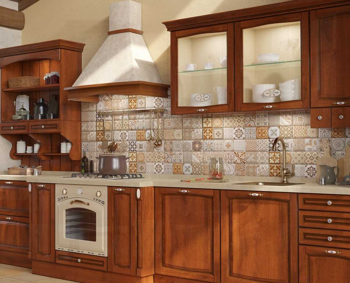 Красивая кухня в старом стиле непременно должна иметь фартук из традиционных материалов: керамика, мозаика, терракота. Остальные стены обычно отделываются так, чтобы еще больше подчеркнуть – этот интерьер создан в старинном стиле. Для этого используется облицовка натуральным камнем, керамикой, натуральной древесиной. Можно оголить кирпичную кладку и покрыть специальным составом, чтобы получить облагороженную каменную стену.