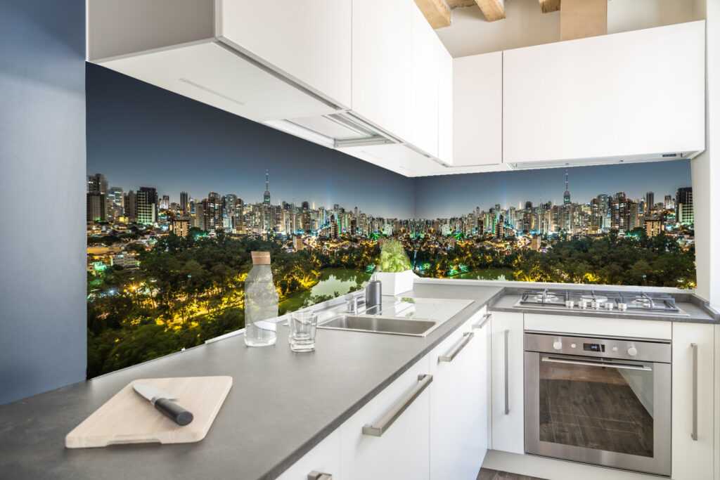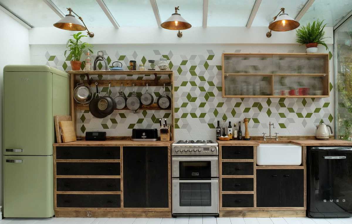 К примеру, если сделать фартук ярким или с активным рисунком, то всё, что вокруг него (стены, фасады), оставьте нейтральным.