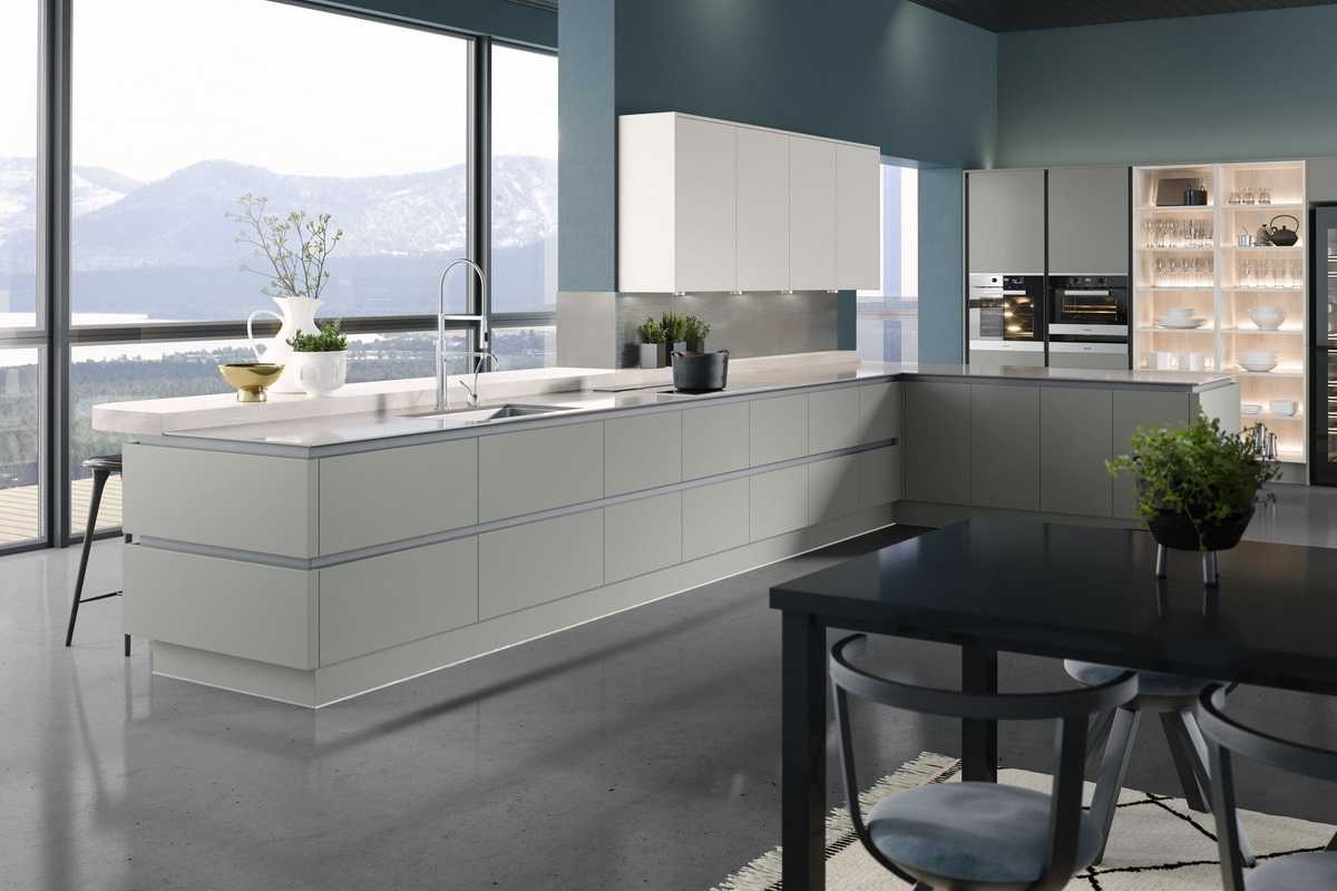 Преимущество таких кухонь в том, что они добавляют зрительной глубины оформляемому пространству. Кроме того, от этого выигрывают и остальные метрические величины, как высота и ширина. По этим причинам вам действительно будет комфортно в такой комнате как одному, так и в большой компании.