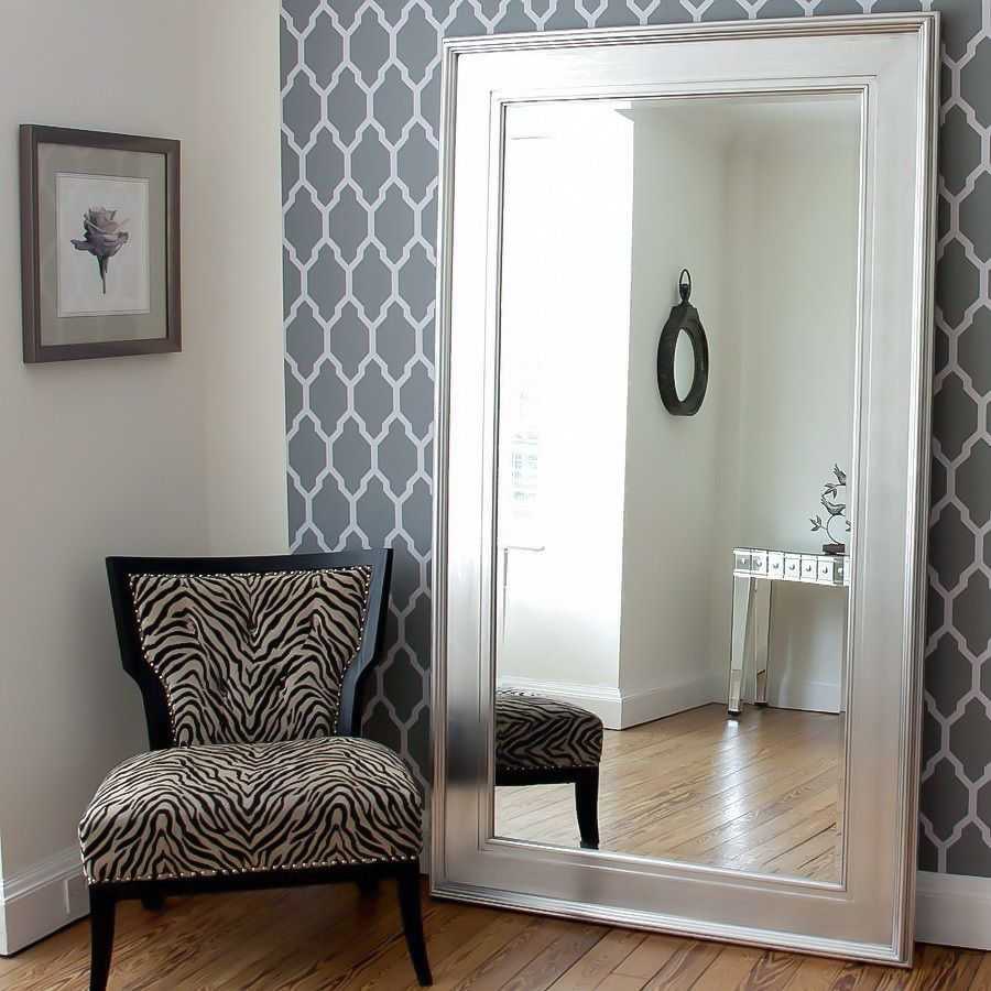 Чем меньше комната, тем крупнее зеркало. Недостаток свободного места в хрущевке легко оптически скрыть при помощи отражающей стены. Эффектный акцент может полностью покрывать поверхность, занимая участок от пола до потолка. Узкие детали применяют для зонирования.