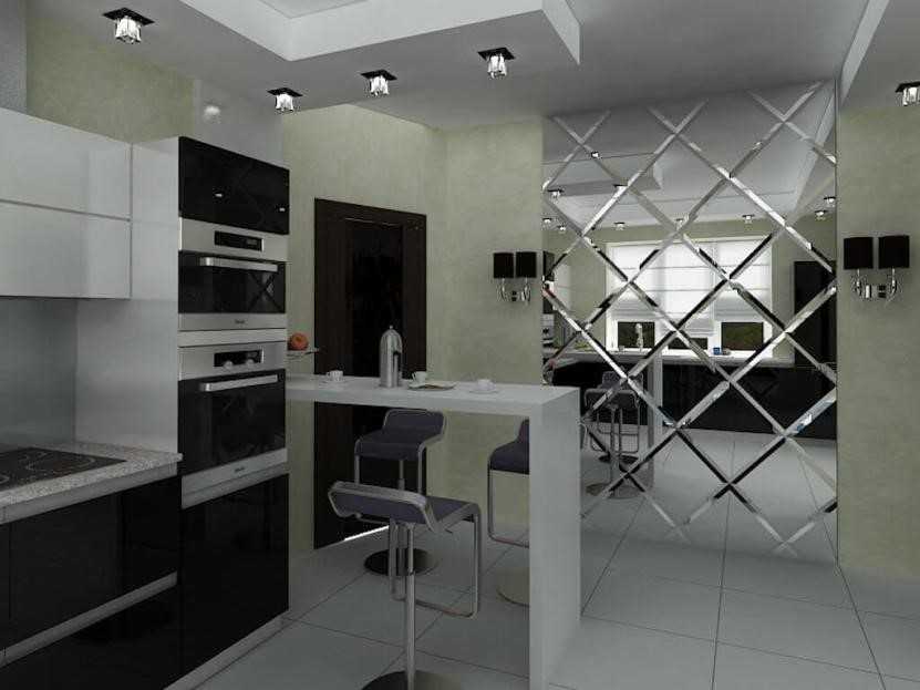 Зеркальная плитка в интерьере кухни