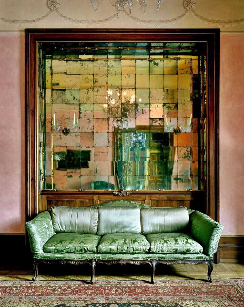 Зеркальное панно на всю стену будет смотреть шикарно