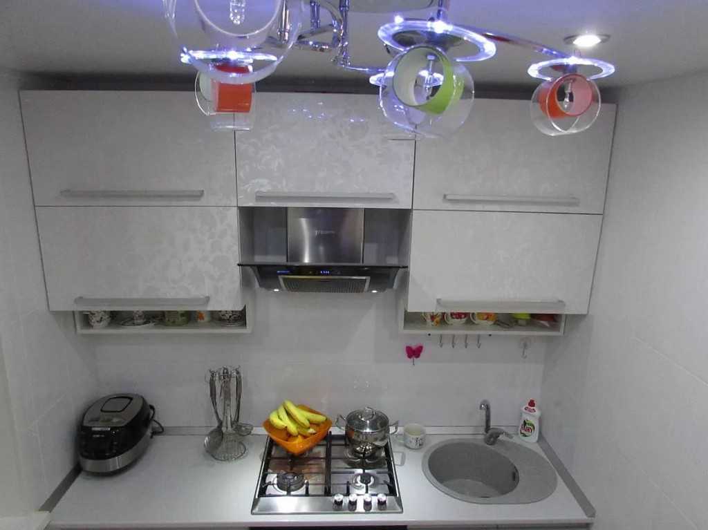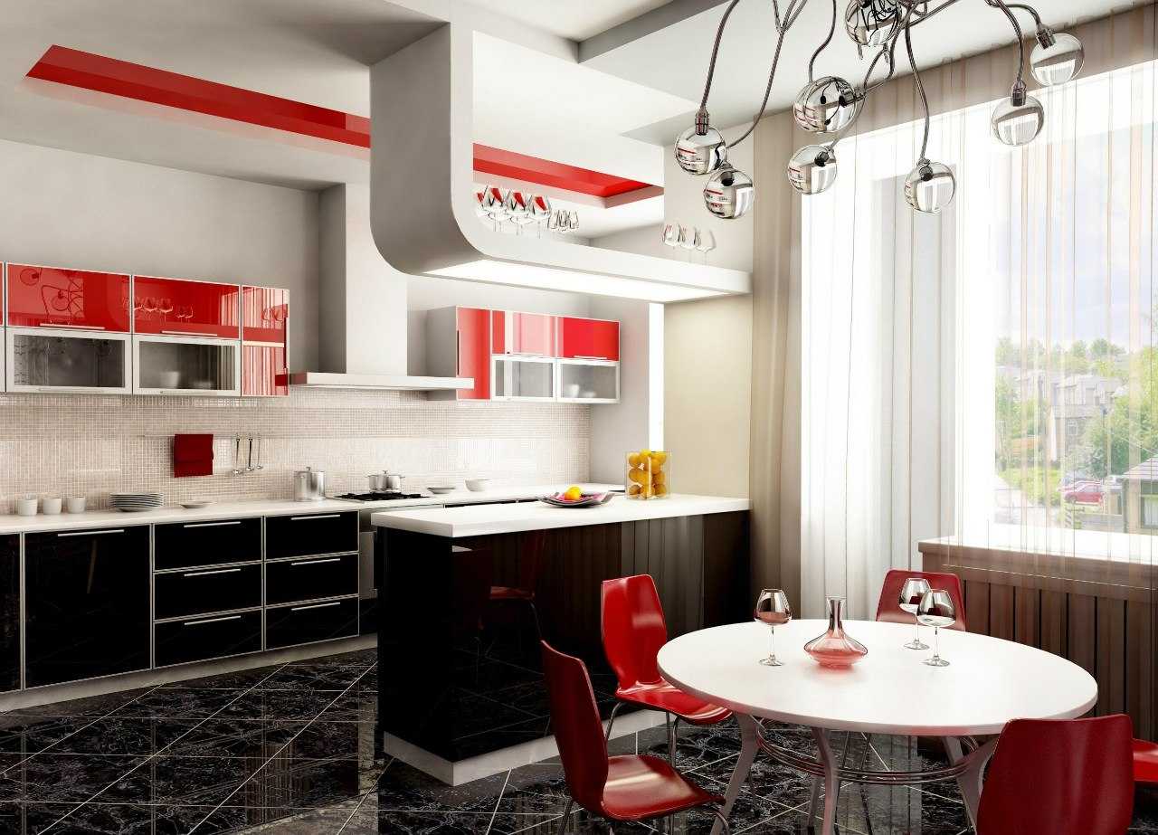 Выбор осветительных приборов не менее важен, чем все остальное. На кухне лучше расположить несколько уровней. Так зону готовки можно дополнительно оборудовать светодиодной лентой или купить вытяжку со встроенным светом.Интерьер кухни в хрущевке обычно ограничивается центральным осветительным прибором — простой люстрой или несколькими точечными светильниками. Для освещения маленького пространства достаточно одного источника.А вот в большой кухне можно использовать оба источника. Оборудовать люстрами можно центральный островок, а точечными светильниками остальное пространство.Кухня — место реализации ваших инженерных способностей. Упорядочить множество предметов быта и при этом сохранить общий стиль помещения — задача не каждому по силам