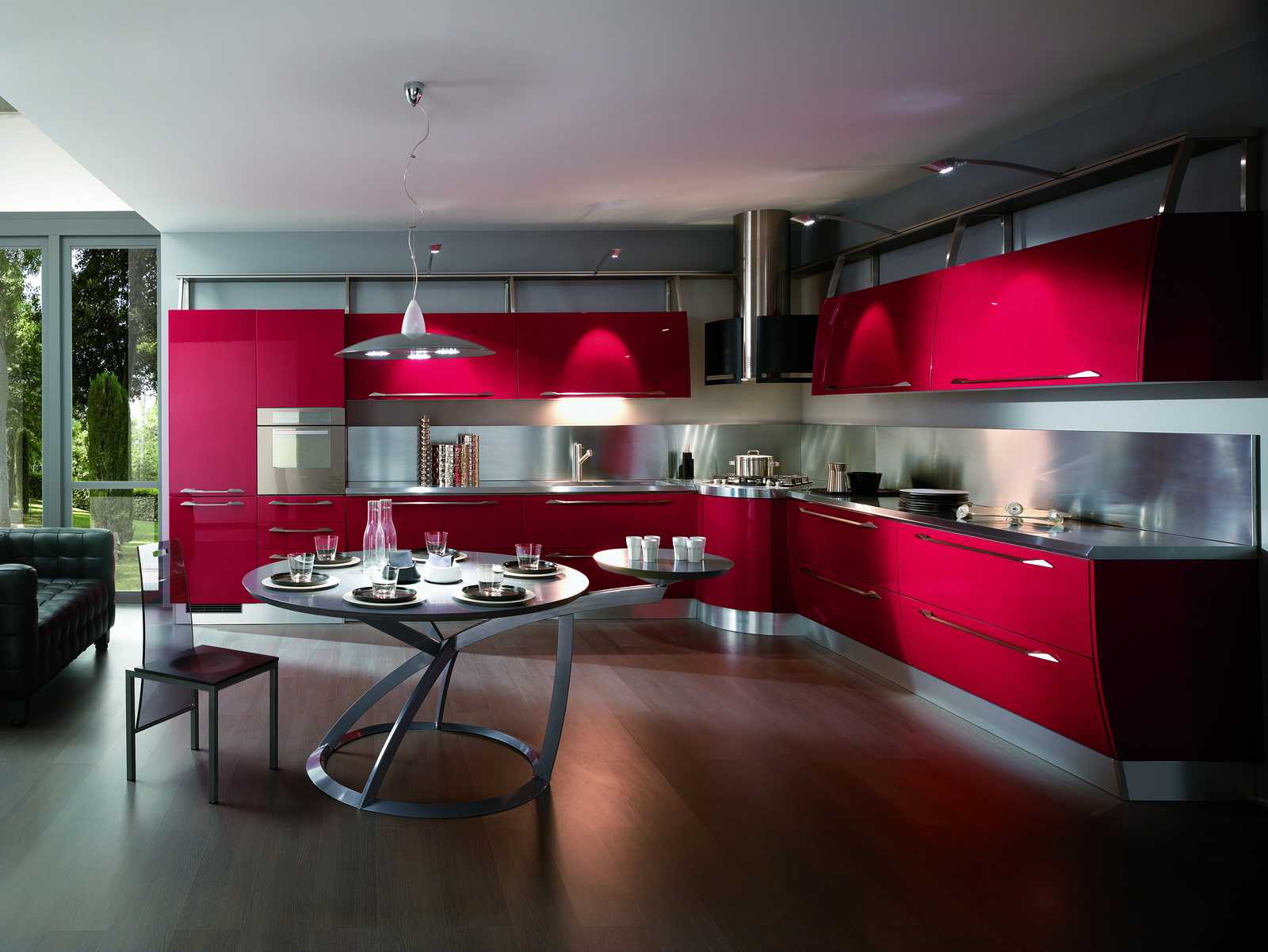 Хай-тек. Современный стиль, совмещающий в себе минимум мебели с большим количеством современной техники. Свободное место занимают кухонные комбайны, духовые шкафы и программируемые печи. Практически полностью отсутствуют декоративные элементы. В качестве отделки чаще всего используется металл, можно заменить стеклом.
